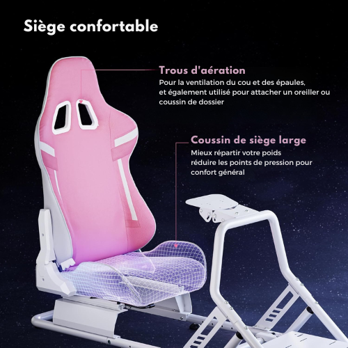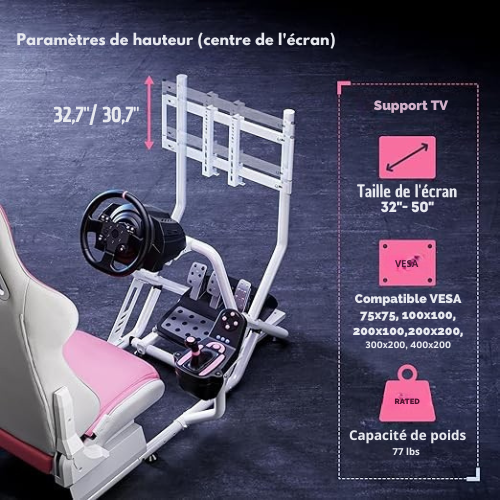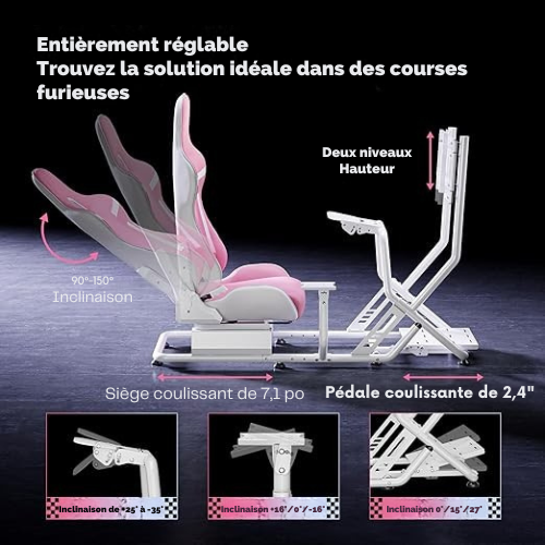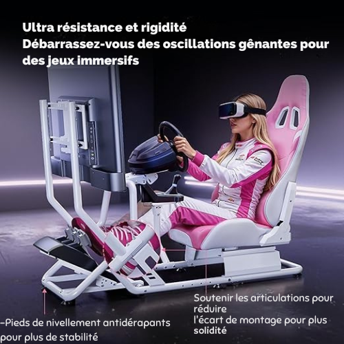 Le châssis en acier renforcé est conçu pour absorber les forces élevées générées par les volants direct drive, assurant une immersion totale sans flexion.
