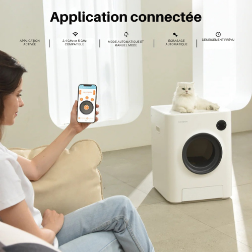 - Notifications : Remplacement sac / niveau litière / erreurs système via application