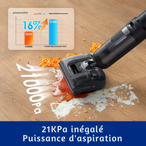 Profitez d’un nettoyage vraiment impeccable grâce à la technologie CleanFlow™ HydroWash. Offrant un lavage continu à l’eau propre et une récupération efficace des eaux sales à 450 cycles par minute, elle garantit des sols étincelants tout en capturant les particules fines grâce à un système de filtration HEPA intégré. Qu’il s’agisse de petits dégâts quotidiens ou de grands nettoyages, le CleanFlow™ S7 Ultra redéfinit les standards du soin des sols à domicile — rivalisant avec les modèles les plus performants du marché.