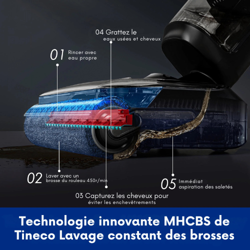 - Nettoyage continu à l’eau propre grâce à CleanFlow™ HydroWash