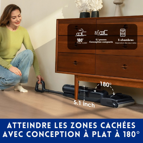 - Design inclinable à 180° pour un nettoyage facile sous les meubles