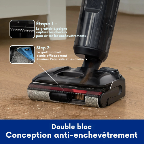 Dites adieu aux blocages de cheveux grâce à la technologie innovante DualBlock Anti-Tangle. Les racleurs à double couche travaillent ensemble pour capturer les poils d’animaux, la poussière et les débris, tandis qu’un peigne intégré empêche les nœuds et qu’un grattoir linéaire élimine l’eau sale et les résidus. Cette conception ingénieuse en fait un choix privilégié pour les propriétaires d’animaux et offre des performances supérieures aux aspirateurs verticaux, robots ou balais sans fil standards.