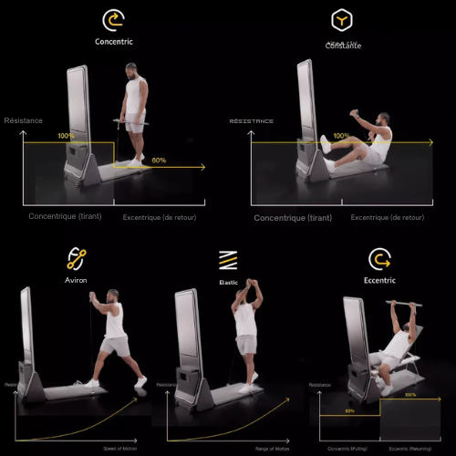 La résistance de NeuroFit™ s’ajuste automatiquement à votre force en temps réel. Que vous travailliez la puissance, le contrôle ou la précision du mouvement, le système s’adapte pour offrir un entraînement équilibré et progressif, tout en favorisant une pratique sécurisée.