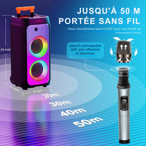 Livrée avec 2 Microphones Sans Fil