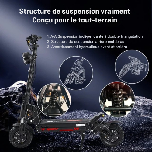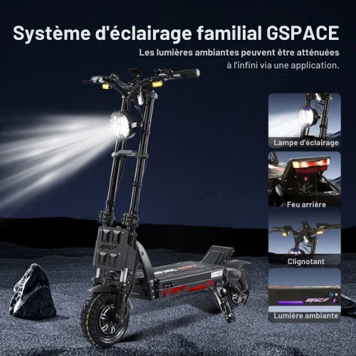 La ThunderRider™ combine ingénierie avancée, puissance massive et technologies de sécurité premium pour offrir l’une des trottinettes électriques les plus avancées de sa catégorie. Pour les trajets quotidiens comme les explorations hors route, elle garantit contrôle, confort et confiance absolue.